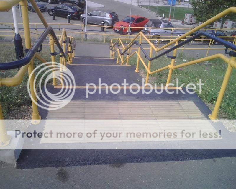 This set of steps (and the assoicated ramp visible at the bottom) form the access to the Dartford bound NR platform at Greenwich. Some of you no doubt have run up/down the "Laxmeesh steps" on a DLR challenge!