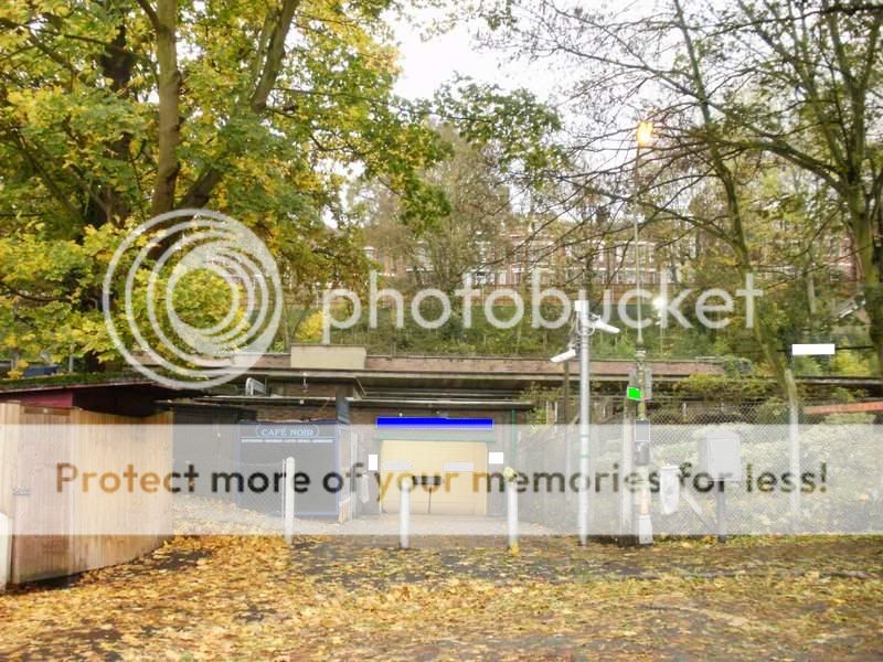 This is the Priory Gardens entrance of Highgate with the disused high level platforms above and the A1 Archway Road high up on the embankment.